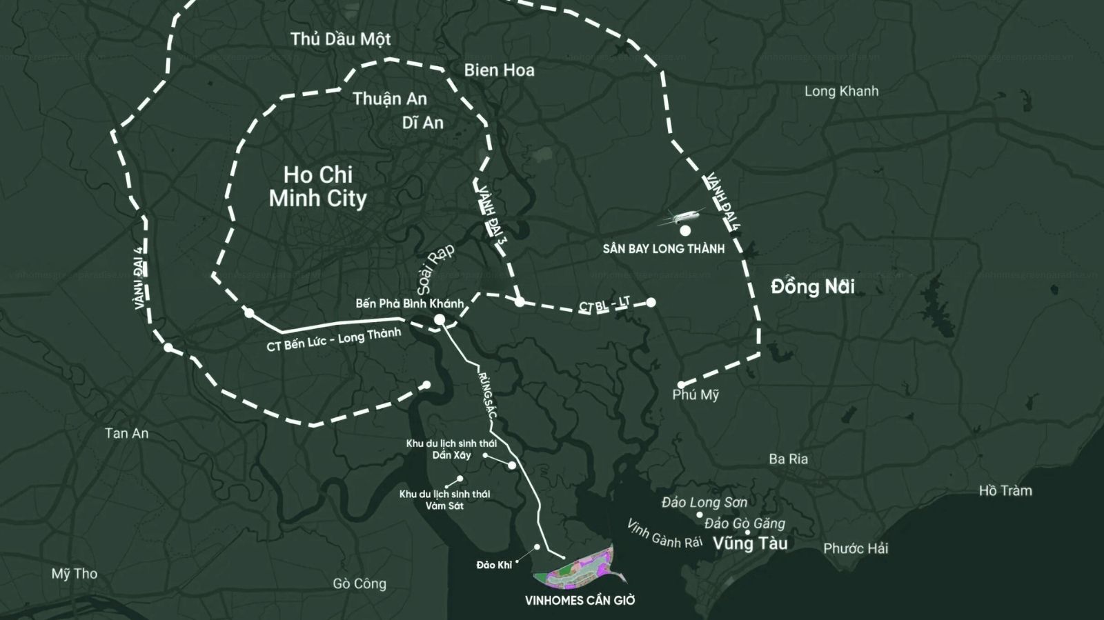 Vinhomes Green Paradise nằm ngay trong bán kính khoảng 30 km so với tam giác logistics Long Thành – Cái Mép – Cần Giờ, khu vực được đánh giá là động lực chính cho chuỗi cung ứng phía Nam.
